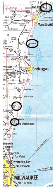 The surface search on Saturday had covered an area north to south about 35 miles. Although I didn’t note exact shore points, it appeared that this covered an area from Port Washington north to Cleveland. An intensive shore search had been included. The area extended out from shore approximately 10 to 15 miles. This area was blacked out on their map in the communications center. The area was searched in a pattern such that paths of the boats were parallel to each other in 1½ mile intervals. Weather was good and the lake was calm. Under these circumstances they have a high POD (possibility of detection). Although this would be about 525 square miles on a rectangular pattern, they figured some 700 square miles of lake had been searched that day as vessels from stations to the north and south of the area were also included, although not in the in the intensive search area. |