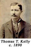 had six additional children. In the family histories that have been provided to us, Thomas T. Kelly is shown as the fourth of fifteen children born to William and Catherine, and this would place his birth date in 1861 between John D. Kelly (1860) and Edward E. Kelly (1863). Tom’s wife, Katherine, held a surprise dinner to celebrate Tom’s 30th birthday in 1891.3 At the time of his death, however, Katherine seemed to believe that his birth date was in 1864. She may well have been confused about this due to the shock and untimely nature of his death. The death certificate from the City of St. Louis reflects this confusion and the erroneous date was thus recorded in the local newspapers at the time of his death, and etched forever on his grave stone in Holy Cross Cemetery just outside of Paola, Kansas. The archives of St. Joseph Catholic Church in Brimfield, Illinois, reflect that Thomas Kelly was born on December 8th, 1861 and baptized on February 16th or 17th, 1862 and I feel that resolves any discrepancy regarding his date of birth. We are advised that the original entry of this baptismal record is in Latin, very faded and, unfortunately, does not indicate any middle name, so we are left with another mystery as to what the middle initial “T” stands for, if in fact it stands for anything.